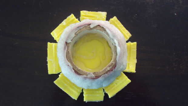 Una vez seco con alicates con cuidado encaje borde de la tapa así que tiene las aletas. Presione las aletas hacia abajo por lo de arriba que parece una flor. A continuación dejo a dry(again). Entonces si usted escuchó atentamente dije uso pegamento porque tienes que quitar poco a poco la banda (ya que se seca). Para ello, sacar la tapa, luego despéguela lentamente de la banda del rollo de cinta. Luego, deje que se seque una vez más. Hay que ir que allí es su resplandor en la banda de hebilla de cinturón oscuro.