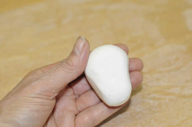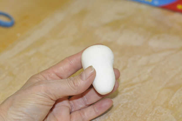 Este rodillo en forma de bola y comienzan estrechamiento al final en la forma de un huevo. Esta forma debe se parecen más a una bombilla de luz ahora.