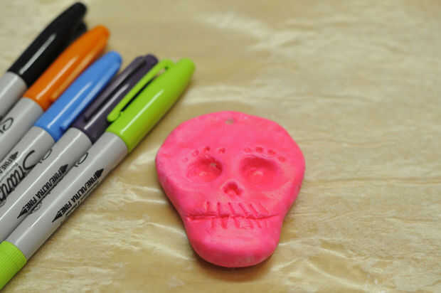 Cómo hacer un pastel de calavera de azúcarPaso 1: Amasar rosa, rojo y negro para colorear en pasta de gomaMantenga las manos lubricadas con spray antiadherente o aceite de cocoPaso 2: Utilice la pasta de goma color a las rosas de forma Aplanar la pas