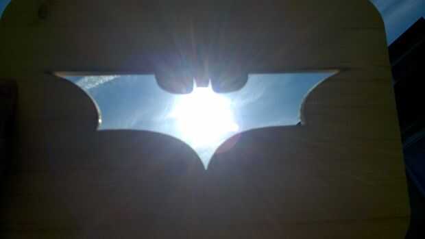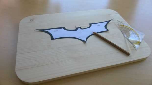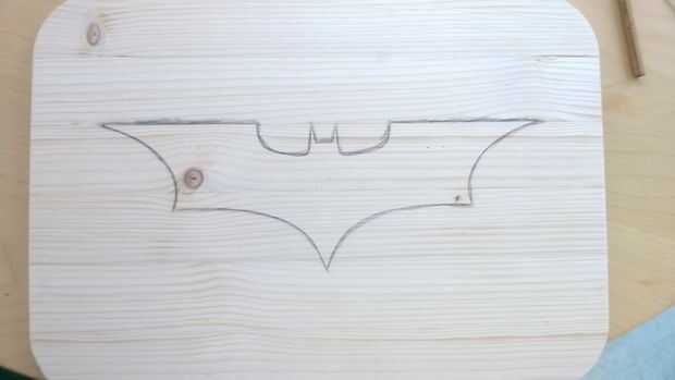 Esto es cuando decidí hacer una luz de Batman. Para hacer el Batman forma, imprimir el logotipo y grapa o pega a la Junta (hay que quitar otra vez así que no exagere). Utilice un lápiz para dibujar la esquematización del logotipo en el tablero. Una vez hecho esto tienes que cortar la madera en el logo. Esta es la parte donde usted puede fácilmente estropear todo el trabajo, así que ten cuidado. Usé un taladro para hacer todo a lo largo de los lados y luego un rompecabezas para conectar los agujeros. Luego utilice una lima para llegar a los bordes.