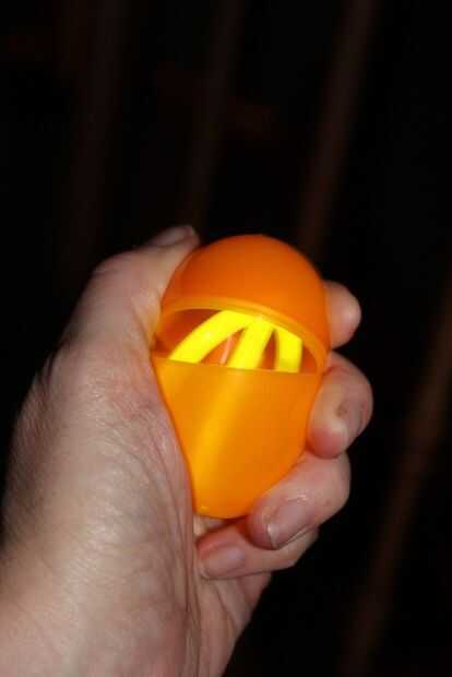 Ruede para arriba de los palillos del resplandor y los puso en los huevos