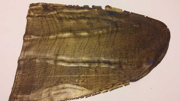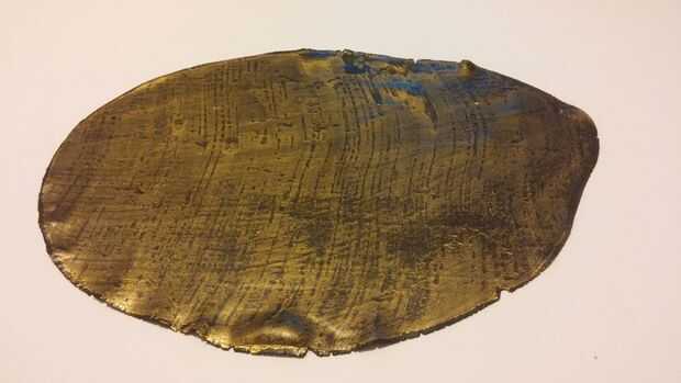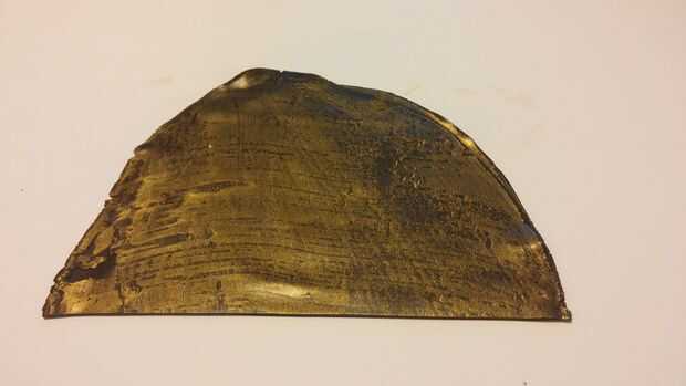 Después de su última capa haya secado rodillo la arcilla a través de la máquina de pasta en el ajuste siguiente. cortar la arcilla en la mitad y la pila y puesto que en su pasta la máquina otra vez, esta vez el siguiente ajuste por debajo de la última. Repetir hasta llegar a su deseado crujido. (En estas fotos usé 3 capas de pintura, por lo que el crujido no era muy pronunciado. Usé las secciones de esta hoja en la parte posterior. Probé otra vez y encontré que una capa gruesa de pintura dio mejores resultados)