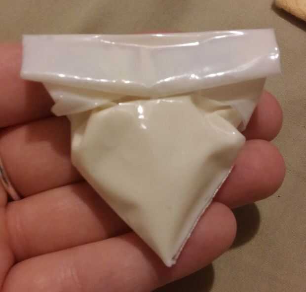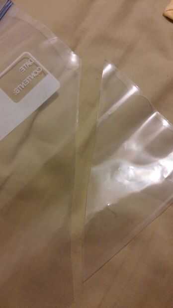 Cortar una esquina de su bolsa de plástico y llenarlo con la mezcla de arcilla de polímero. Empuje de la arcilla hasta la punta de la Manga pastelera pequeña. Ahora tire de ambas esquinas de la bolsa de plástico al centro y hacia abajo la parte superior. Corte una sección pequeña de la punta de la bolsa y significa pequeña! Es mejor empezar en pequeño y luego cortar un agujero grande. (Si te equivocas corte la otra esquina de la bolsa y repetir)