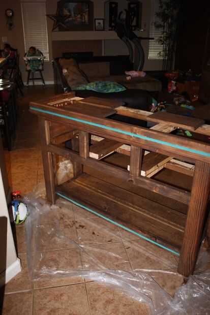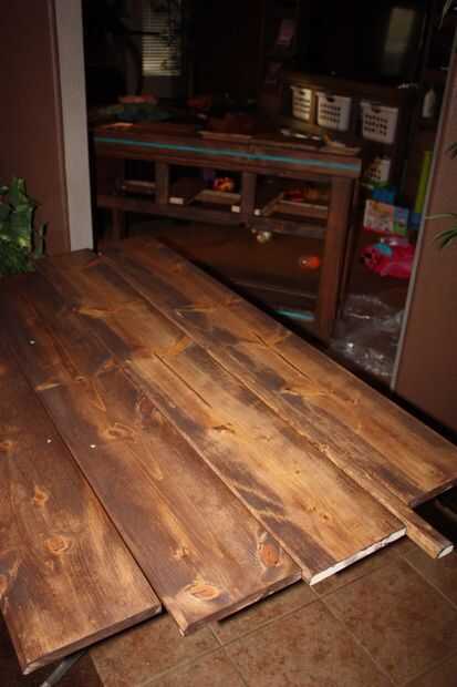 Limpie con nuez especial minwax. Después de capa limpiar las tiras de resplandor. A continuación una capa de roble desgastada, da una mirada resistida calcinante, parece mucho más rica. Limpie la tira de resplandor limpio otra vez.