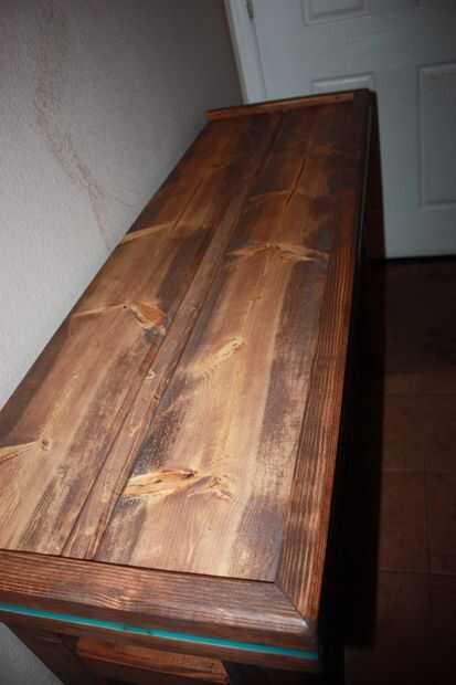 Me gusta mucho cómo esto resultó. Que hubiera mirado un poco mejor con un acabado más ligero, más natural... pero tengo que coincidir con el resto de nuestros muebles. Elegí 2 x 4 y pino tableros con mucho carácter, el frente de 2 x 3 tiene un nudo muy extrañas! La tira de resplandor brille bastante brillante, yo sólo no podía capturar una foto en la oscuridad. Echale mi instructables de árbol de resplandor, el resplandor sobre el mismo, ver en persona es la única manera de obtener el efecto completo aunque. Déjame saber qué piensas, si tienes alguna duda por favor pregunte.
