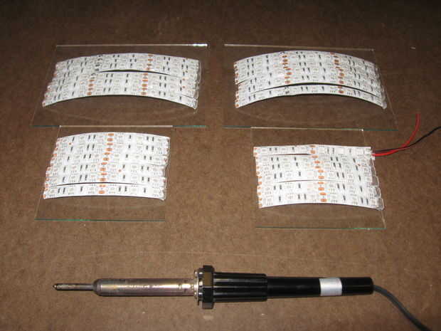 2. una vez dobladas empiezas soldar los enlaces entre sí. (Nota: la cantidad de enlaces necesita conectar es igual a la cantidad de tiras de LED que usted está colocando en el área de medida de la cubierta.)