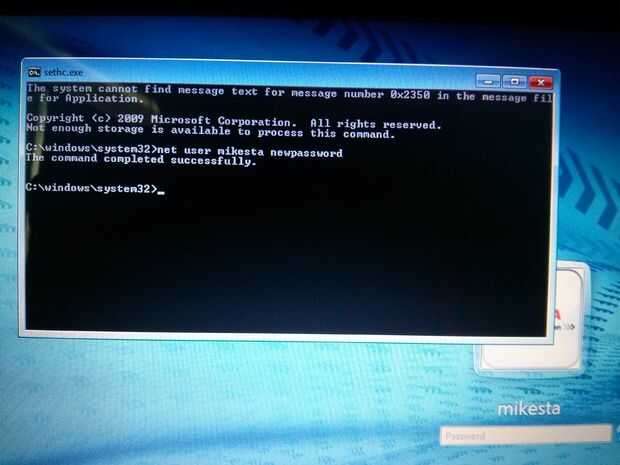 Arrancar el equipo normalmente. Cuando se le pida que introduzca su contraseña en la pantalla de inicio de sesión, pulse tecla Mayús cinco veces, esto hará que el símbolo aparezca. Tipo de usuario de red (su nombre de usuario) y contraseña nueva.