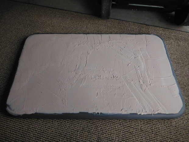Si tu refrigerador fue abollado y tuvieras para algunos clientes, lo más probable es el metal todavía ser ligeramente deformado y necesita algún relleno. Resultó que con el mio que la tapa entera estaba ligeramente alterada, por lo que terminó poniendo una capa fina de relleno en toda la superficie superior de la tapa. Para aplicar el relleno, mezclar con el endurecedor crema que viene con y entonces utilice una espátula o un separador especial para poner en un liso, incluso capa. Después de cura, usted necesitará arena. Usé una lijadora eléctrica con un papel de lija de grano 80. Después de haber lijado lo, usted necesitará prime otra vez.