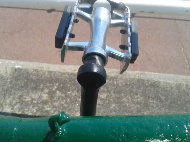 Las bielas eran increíblemente delgados. La rosca de los pedales bastante largos. El hilo de extra pedal atascado de la parte posterior de las manivelas causó problemas. Enredarse la cadena, está picado la pintura. Al final me salió la amoladora angular y alisó. Y luego hizo otro DIY pintar trabajo.