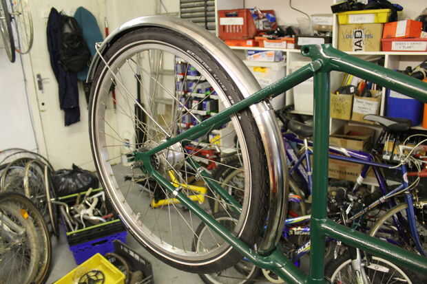 Pero los ojos de guardabarros en el tándem en lugares muy extraños. Así originario un par de guardabarros de acero inoxidable de Velo Orange que tenían guarniciones muy flexibles. Compré estas y aseguró con las ruedas antes de enviar el marco pintado y pulido con chorro de.