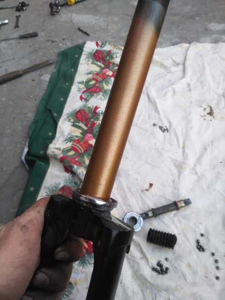 Cuando saqué el soporte inferior no pude quitar esa parte que el soporte en el marco. Después de una hora de duro trabajo y muchos fracasos, finalmente lo hice, la moto estaba en pedazos!