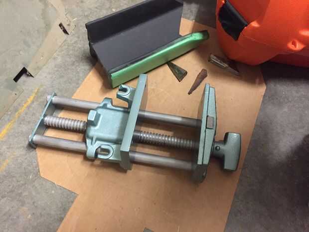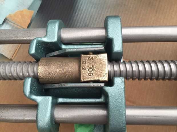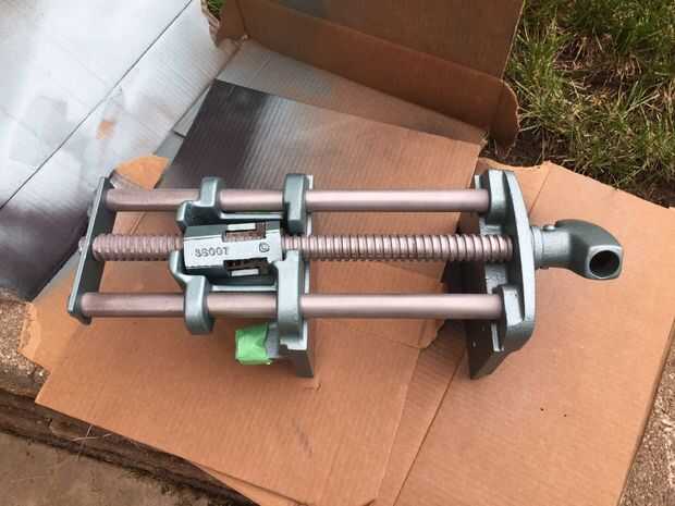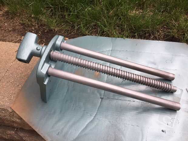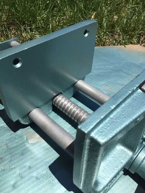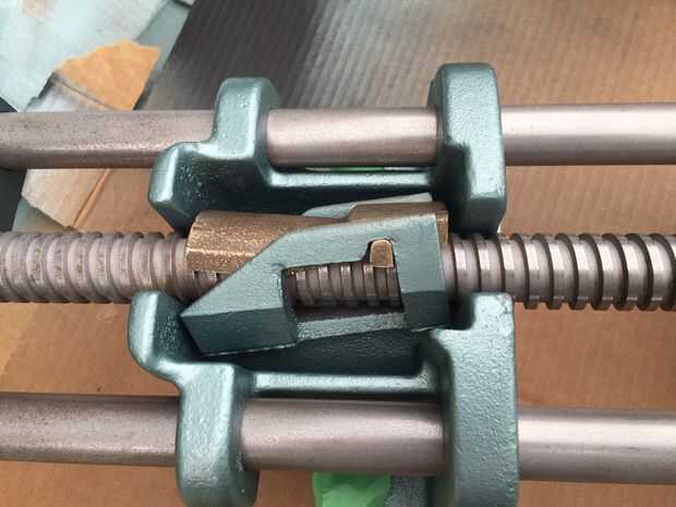 Ahora se vuelve a montar el tornillo de banco. Gire el tornillo de la derecha y levante la mandíbula delantera y trabajar todas las partes móviles para garantizar el correcto funcionamiento: unas rotaciones contra reloj para desactivar el mecanismo de bloqueo de rosca (por gravedad) y la mandíbula delantera puede ser sacada y empujado hacia adentro sin girar el mango - un par de vueltas hacia la derecha enganchar el mecanismo de cierre de rosca para apretar como cualquier otro tornillo.
