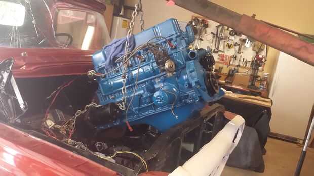 Mientras que el camión estaba siendo arenado, comencé a trabajar en la reconstrucción del motor y transmisión. Compró un bloque de motor de otro carro y había comprado un kit de reconstrucción para el motor en línea 6 223. Decidí ir con el motor en línea 6 para mantener el carro tan original como sea posible. Desmontado el motor que compré y lo llevé a la tienda de máquina a ser aburrido y limpiar. Debido al extremo desgaste de las paredes del cilindro, el motor tenía que ser aburrido.0060 de pulgada más grande que el original. Para compensar, he instalado pistones más grandes. Con las piezas correctas y herramientas, montaje del motor fue relativamente bien. Me puse un nuevo carburador de Holley 1904 vidrio bowl, porque el que reconstruido tenía pequeñas grietas interiores que impedía el flujo de combustible adecuado. La transmisión es un "tres en el árbol de" tres velocidades transmisión manual. Pude limpiar y reconstruir en pocos días. Cuando compré el carro, todos cuatro ballestas estaban intactos, pero los choques fueron fusilados. Poner amortiguadores de aire de fábrica en la parte posterior e hidráulica / primavera los choques en el frente. Los frenos de la carretilla son frenos de tambor hidráulico en las cuatro ruedas. El freno de las líneas fueron oxidadas a través, cilindros de rueda agrietados, desgastado batería y zapatos, tuve que reemplazar todas las piezas del sistema de freno. La parte mucho más tiempo del se purga del sistema de aire. Hay un montón de trabajos más pequeños que participaron así: instalar un nuevo tanque de gas, fabricación de soportes del motor nuevos, radiador nuevo, etc..