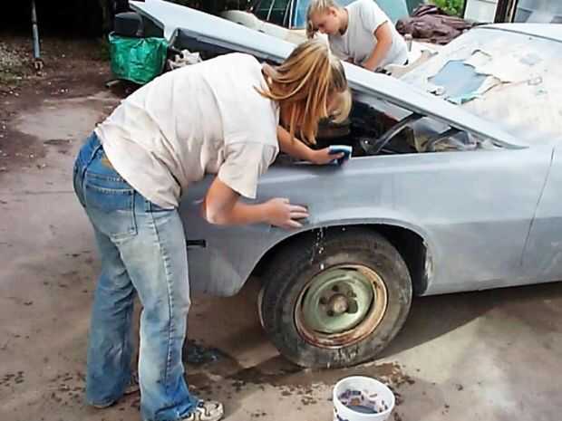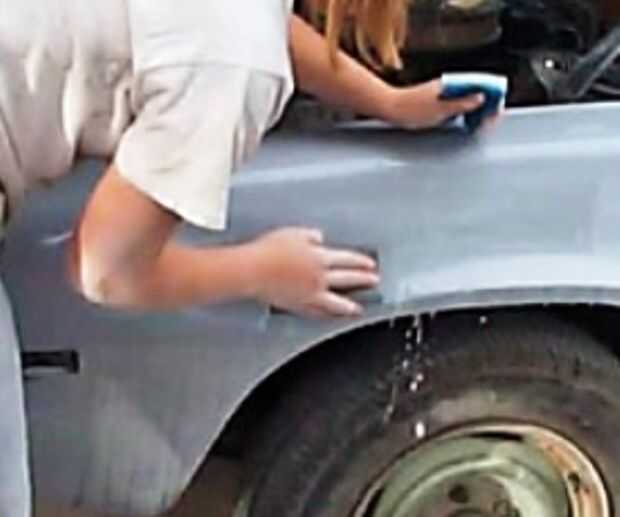 6. Haga su camino alrededor del vehículo otra vez usando una lija de 500 y 600.  Notamos con