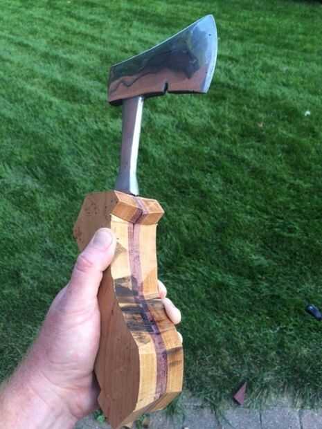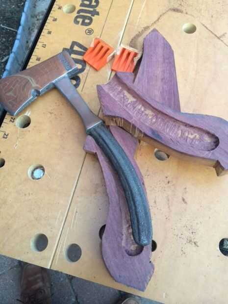 Una vez que ha dibujado su manija se dignó en 1 mitad de madera usted puede ahora cortar hacia fuera. Sólo usé un jigsaw ya que no tengo una sierra de banda.