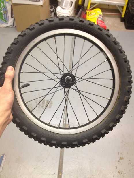 Mientras tanto, usted puede trabajar en los radios delanteros. Tome el tubo neumático y luego rocíe los radios con WD-40. Esto limpia el óxido de la superficie derecha. Después de que ha sentado un poco, tomar un cepillo de dientes, algunos consejos de q y un trapo y limpiar los radios. El neumático sí mismo estaba bien pero no era el tubo interior. Si necesita reemplazar ambos, hacerlo. Sólo asegúrese de que tener las dimensiones de la derecha.