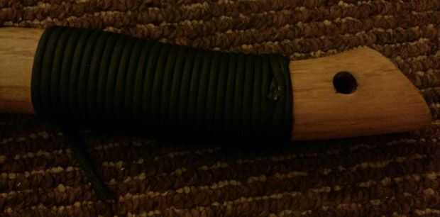 La cinta de silicona hace una gran base para el paracord abrigo/azotes en el mango si se salta este paso que el paracord puede cambiar de puesto en uso. Es una buena receta para las ampollas!
