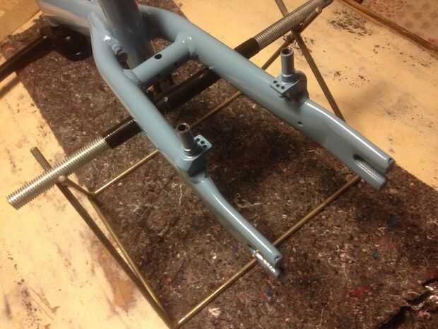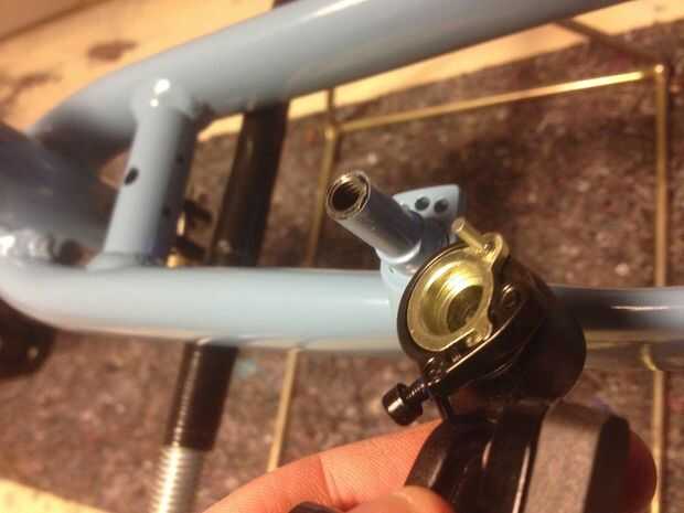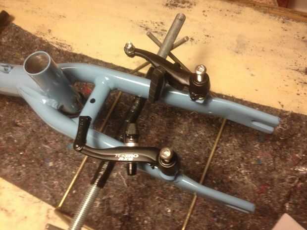 preparar el marco: Nota del powdercoat hace los soportes un poco demasiado grueso para caber lo frenos v-brake en, por lo tanto esto debe eliminarse
