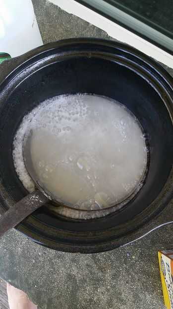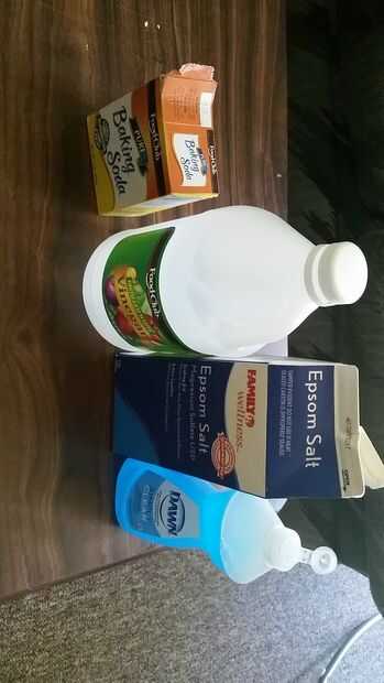 No tomo una foto antes de este paso, el pan era tan negro que no podía contarla era cobre revestido. de todos modos, Remoje el pan en vinagre/bicarbonato de sodio/sal de Epsom y jabón por un tiempo. Do esta fuera, huele. La mina hacia fuera en el porche y me olvidé de un par de días.