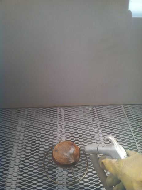 Paso 5: Una vez que tenga sus partes criticó muy bien quitando todo el moho, quiere evitar tocar ellos con las manos y contaminar la superficie con aceite de su piel. Usé unos guantes de goma azul... como la clase médico en. Ahora desea aclarar los medios de comunicación, polvo y residuos de granallado. Si sus piezas son de aluminio, se puede utilizar simple green. Mina eran acero en este caso, usé TSP (disponible en Home Depot en la sección de pintura). El TSP ayudarán a prevenir la formación de moho en la superficie del acero durante el siguiente paso. Esto descubrí la manera dura.