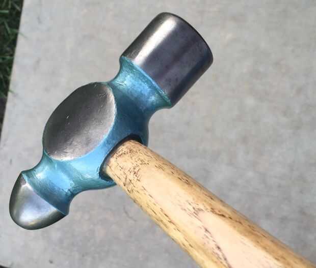 Tengo un martillos edad media docena de tipos diferentes con asas están dañadas o rotas. Como la restauración de la mordaza que hice la última vez, tenía cero experiencia reemplazando los mangos de martillo y estaba un poco nervioso acerca de arruinar un martillo viejo fresco. Después de ver algunos videos y leer a través de unos excelentes instructables, decidí abordar el martillo bola viejo de mi abuelo. Antes de comenzar, usted necesitará un asa de recambio, conjunto cuña y algún sellador (todos se describen en los siguientes pasos).