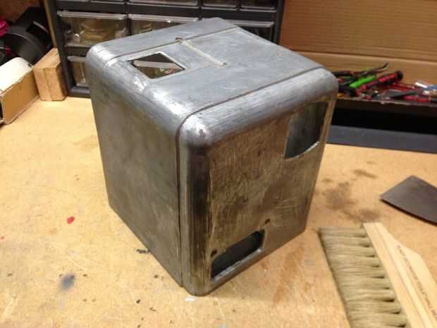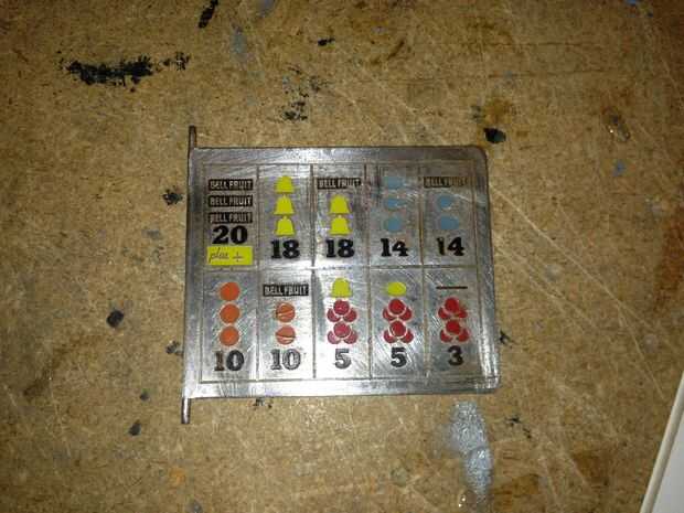 La solapa superior que muestra las combinaciones de pago para la máquina de ranura se oxide, pero la pintura en cada símbolo era todavía buena. Ya que quería conservar la pintura original, empapado la aleta en vinagre blanco durante la noche (aproximadamente 12 horas) para ayudar a levantar el moho. Luego utilicé un pequeño flathead destornillador para raspar el moho restantes, seguido por papel de lija para restaurar el brillo del metal.