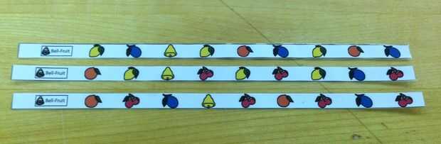 Utilizando el programa Adobe Illustrator, luego redacté mis propio cintas de carrete, usando una combinación de símbolos tomados de la internet y algunos de mi propio diseño. Luego imprime en papel de impresora regular y había laminado de modo que durarían más de largo el papel y la tinta.