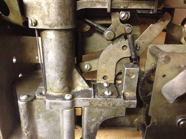 Ahora que el níquel era el mecanismo, fue capaz de observar y jugar con las diferentes partes para ver cómo trabajan juntos. Luego usé los diagramas del manual del propietario para comprobar si faltan partes. Viendo que nada faltaba pensé que trataría de poner un centavo nuevo en el mecanismo y ver cómo funcionaría.