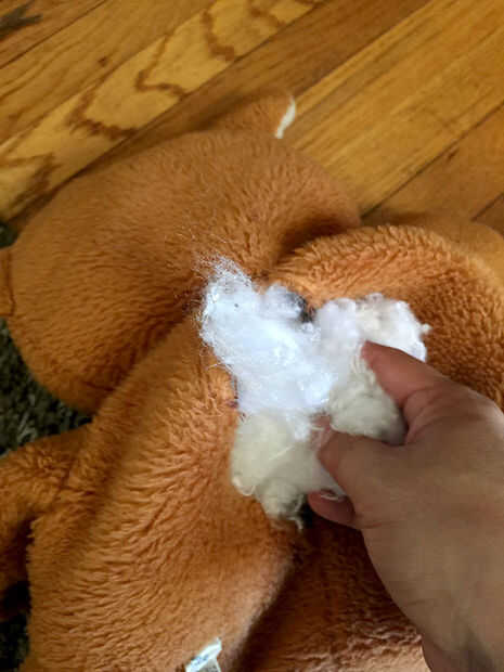 Ahora es el momento para volver a rellenar. Compré este "económico respetuoso del medio ambiente había reciclado poliéster fiberfill" y terminó eliminando todo después de nuevamente había relleno completamente. NO HAGA ESO. Él terminó sintiéndose como un animal carnaval barato no era super suave y blandita como era originalmente. Así, acabé de sacar todo el relleno y compró algunos "sedoso suave" en lugar de otro. ENORME DIFERENCIA.