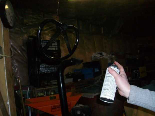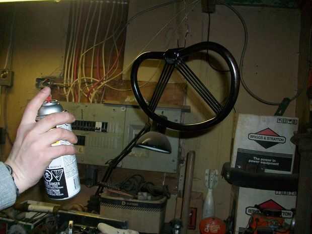 Mi estrategia aquí es colgar con algunos cables y usar pintura en aerosol bomba negro brillante en dos aplicaciones.