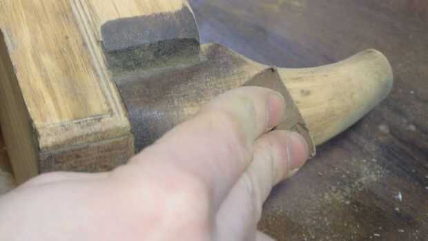 A veces el mango de estos planos madera está suelto. Remover completamente hace lijado un poco más fácil y puede ser pegado con epoxi luego. Mina todavía sentarse bastante sólido y decidí mantenerlo así y pagar por ello con un lijado a mano más difíciles.