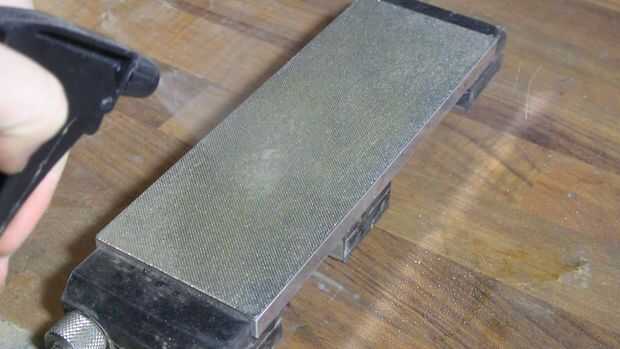 Encontré que piedras de diamante no son tan agresivos después de un tiempo, pero un útil por mucho más tiempo. Así que reemplacé mi agua gruesas piedras con diamante lapidado como tiene desgastados. También nota que piedras agua y el aceite necesitan hacer de vez en cuando. De lo contrario se puede crear un borde exacto. Puse mis piedras en un soporte dedicado pero una toalla mojada puede evitar resbalones así.