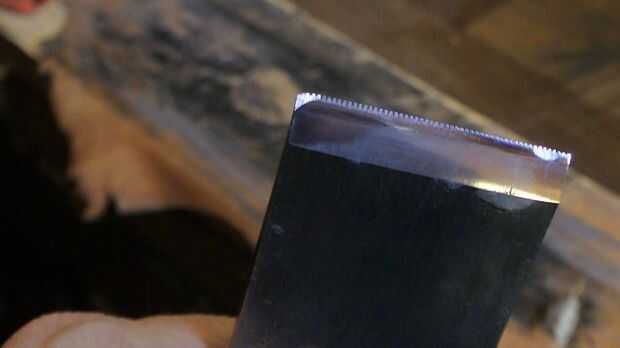 A partir de 100 áreas otra vez brillante arena demostró que material fue sacado muy irregularmente al mal trabajo de afilado del anterior propietario. Así que necesitaba concentrarse en la pala muy recta. Usted puede utilizar un sharpy para marcar la hoja si tienes dificultades para ver de donde sacar material.