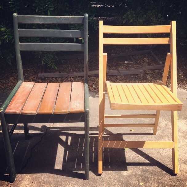 Una vez que has quitado tanto de la pintura/barniz posible, consigue un trozo de papel de lija luz (alrededor de un grano de 180 grado) y Envuélvala alrededor de su bloque de lijado. Dan las sillas una exhaustiva e para asegurarse de que sean agradable y suave. Limpie con un paño húmedo.