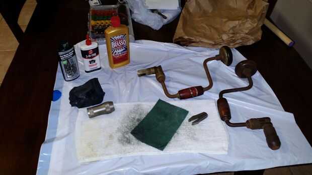 Colóquese en unos guantes de goma y coloque una toalla o trapo sobre la superficie de trabajo. Retire el portabrocas del taladro de mano desenhebrar y sacar las mordazas de pedacito de taladro. Aplique el pulimento de un componente a la vez y empezar limpiando continuamente con el cojín de brillo y eliminar cualquier óxido o suciedad. No permita que el metal esmalte seco en cualquiera de los componentes metálico, esto podría dañar el metal. Utilice el aceite multiuso para quitar cualquier pulimento después de su uso y para comprobar su progreso cada tan a menudo. Este proceso de pulido tendrá que ser repetido varias veces en todas las superficies metálicas (cantidad de tiempo hacer que esto depende de una base de caso por caso). No aplicar esmalte sobre cualquier superficie de madera.