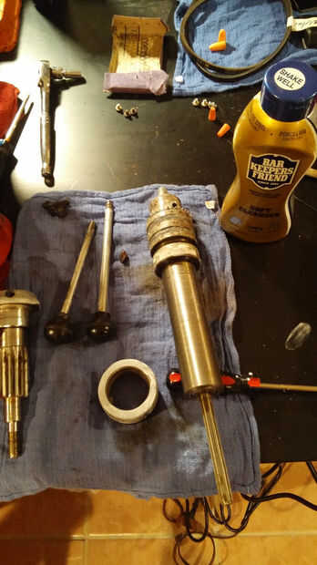 Traté de bar keeper y un cepillo metálico en una dremel limpiar el mandril y el eje. La eliminación de moho era insuficiente por lo que volví a la amoladora de ángulo para terminar el trabajo.