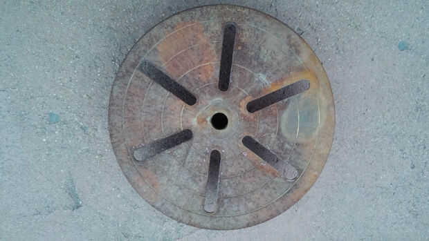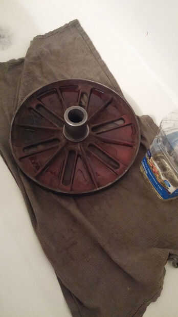 Traté de bar keeper (ácido oxálico) sobre la mesa ranurada. Se puede ver el área circular donde se aplicó en la primera fotografía. Quitó algunos de la roya, pero la amoladora angular con un cepillo de Copa fue mucho mejor.