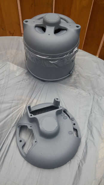 Limpie el motor y quitar la pintura. Prime la carcasa del motor para listo para la pintura.
