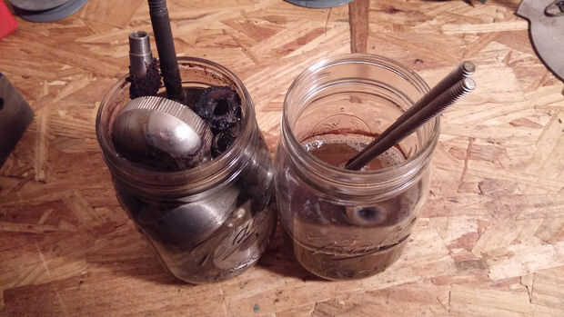 Después de 4 o 5 días el vinagre debe haber hecho su trabajo. Alambre de cepillo, seca y lubrique todo el hardware.