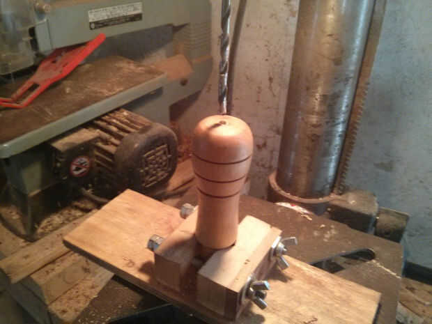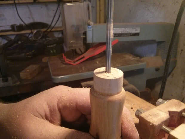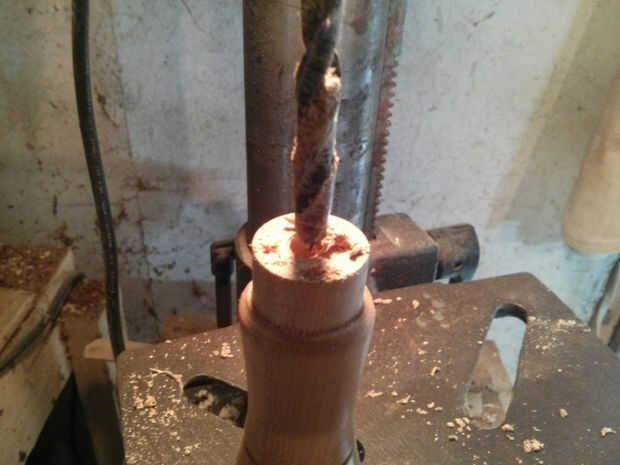 Es muy probable que la espiga en el drawknife es cónico, que significa que usted necesitará perforar la manija en ambos extremos para. Deben ser exactamente del tamaño de la espiga, como que hacerlos demasiado grande hará que la manija se aflojen.
