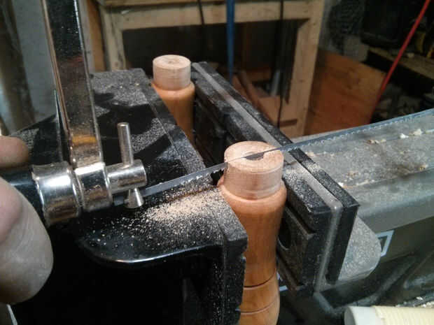 Finalmente, con la Sierra de marquetería, corte una ranura en el bisel que es 1/16" ancho. Como el anillo se golpea ligeramente sobre el bisel, se comprimirlo manteniendo mucho más firme que simplemente siendo prensa cabe solo.