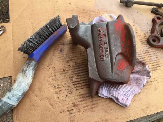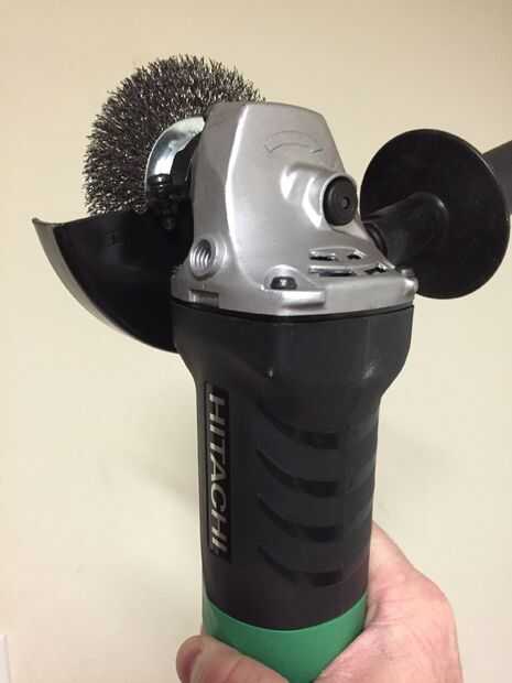Después de usar un aerosol solvente y limpia la grasa y suciedad podría llegar a, tomó un cepillo de alambre y me fui a trabajar. Hice la mandíbula posterior totalmente a mano, que no recomiendo a menos que usted disfrute de ese tipo de cosas. No. Así que me cambié a una amoladora con un cepillo de alambre. Asegúrese y usar protección para los ojos y yo también recomendaría un delantal de trabajo y guantes. Deje que el aparato haga el trabajo. No empuje realmente difícil, porque no es necesario.
