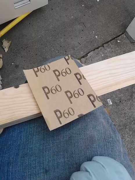 La nueva necesidad de madera para cortar en la misma longitud que la madera vieja. Alinear y taladre el agujero para los tornillos. Y lijar los bordes para tener un borde redondeado, con un 60, 100 y papel de lija grano 150.