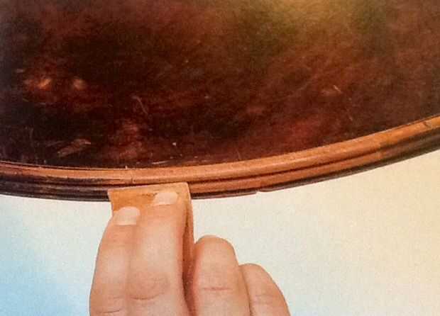 Una vez que se ha formado la forma detallada de los bordes con papel de lija, teñir y pulir el borde reparado para que sea invisible.