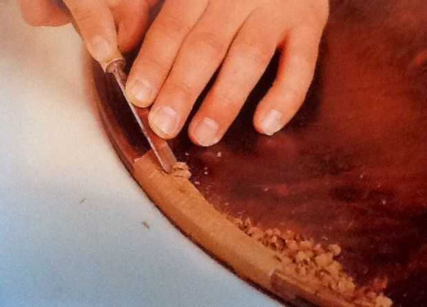 El reborde interno en la mesa debe dar forma con una herramienta de talla adecuada. Una vez más, evitan dañar la caoba pulida.