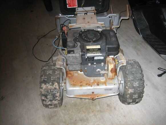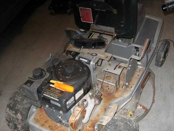 Para este Instructable me estoy centrando en un cortacéspedes de montar a caballo viejo que adquirí. El cortacésped no funcionaba y estaba sentado fuera durante bastante tiempo. El chasis estaba empezando a oxidarse, aunque era aún estructuralmente, y faltaban varias piezas. No estoy seguro qué edad tiene, pero su un cortacéspedes de montar a caballo trasero-motor viejo artesano 10hp ya estoy adivinando es alrededor de 12 + años de edad.