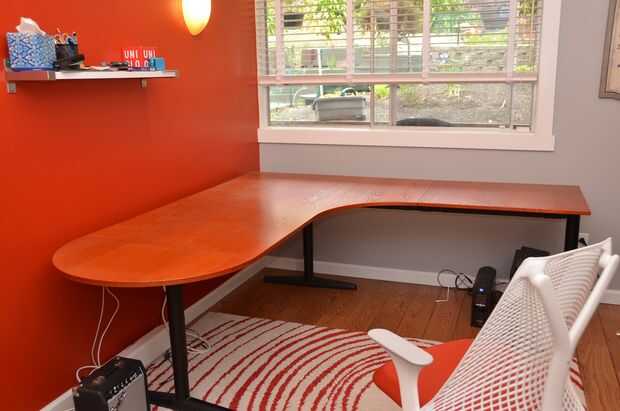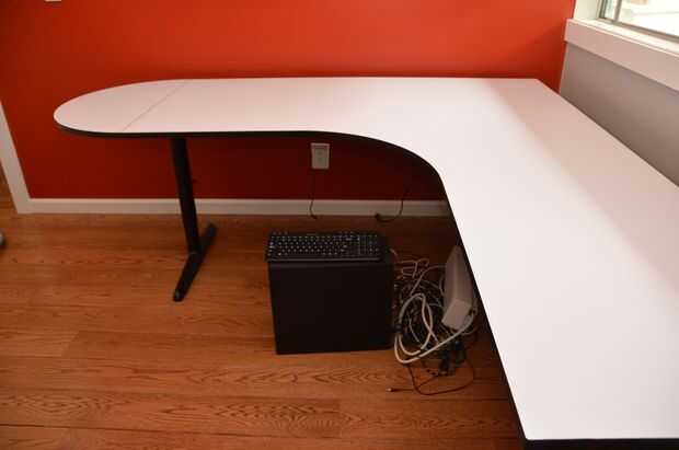 Tenía un viejo escritorio de Ikea con un acabado cerezo intenso, que aunque muy fuerte y útil añadido demasiado color a mi oficina ya marrón. Sabiendo que intentar pintar sería un lío y no resultan en una superficie bastante resistente, opté por volver a la superficie en laminado plástico blanco. Los resultados resultados mejor de lo que esperaba y sólo tomó un día total, con un material total bajo costo $100 USD.