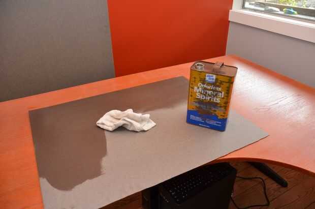 Una vez que se cortan pedazos, limpie la parte inferior con bebidas espirituosas minerales, sólo para asegurarse de que no son contaminantes para debilitar la adherencia del cemento. Esta debe secarse rápidamente, pero obviamente esperar que esto ocurra antes de proceder.
