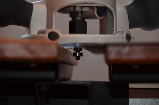 Tenga en cuenta que cuando se mira desde arriba hacia abajo, la broca se estar girando hacia la derecha. Esto significa que usted quiere mover la fresadora en sentido antihorario alrededor del borde del escritorio, tal que la herramienta de corte es siempre "cavar en" para el laminado en lugar de correr a lo largo. Si usted va al revés (es decir que la broca está girando en la misma dirección que usted se está moviendo), el router puede saltar alrededor y ser difíciles de controlar.