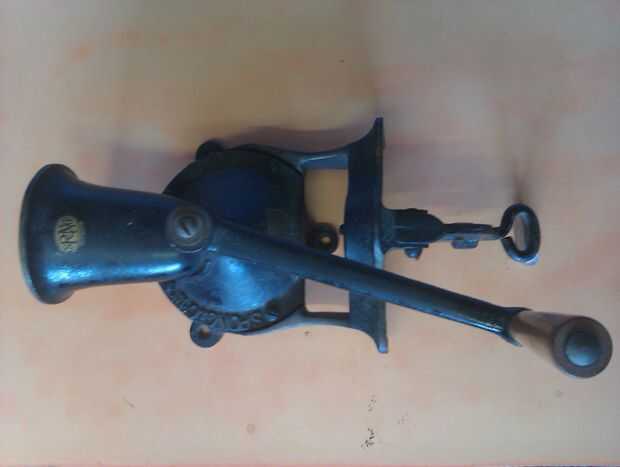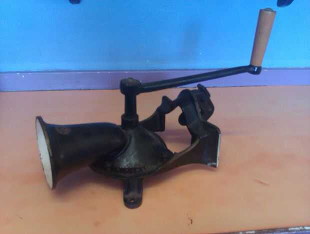Según los enlaces a continuación y otras páginas web, el molinillo de café de Spong que tengo es uno de los primeros modelos (a partir de 1886) como sus fabricantes marca Lee "Londres" posiblemente lo que alrededor de 100 años! La acción de manivela de mano y fresas cónicas de reparto masivo son difíciles de igualar! El No.3 molino es muy popular y obtiene un buen precio, precio de venta $100 se ha visto en línea completa Spong molinos en buen estado. Usted podría fácilmente recogida tal un molino en una venta de garaje por $10, restaurar a $5 (y uso para toda la vida) y en lugar de comprar algún loco cara amoladora eléctrica que probablemente se romperá en un año de pesado utilizar de todos modos.